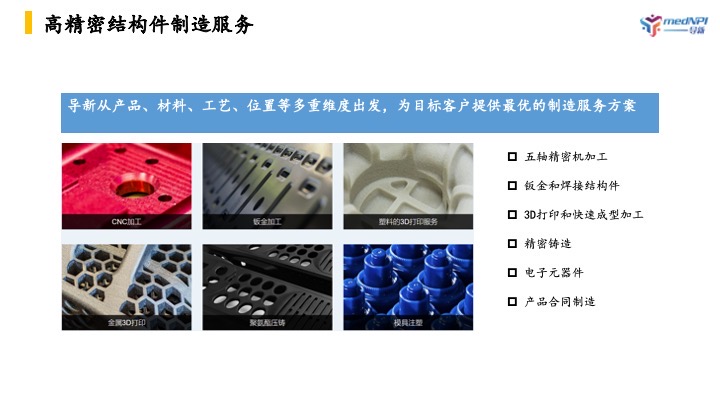 我们致力于为创新医疗器械产品提供「面向制造」的专业服务。 【优选工厂资源】 立足长三角和珠三角,通过设定供应商选择评价指标体系,我们遴选了符合医疗器械产品从研发到量产的不同加工制造资源。 【加速创新医疗器械产品落地生产进程】 基于导新团队多年技术开发、制造管理和供应链管理经验,我们在客户产品开发早期就积极参与,大大节省从研发到制造的试错成本。 【确保质量管理符合医疗器械监管法规要求】 通过信息管理系统,我们让产品开发和量产管理的每一个环节都可以追溯。对于供应链更积极透明地管理,满足最高标准的法规符合性要求。